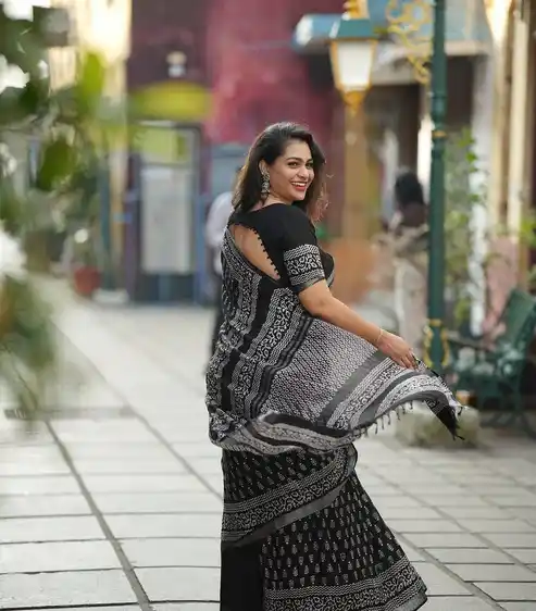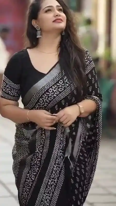 Elegant Black Linen Saree with Blouse – Perfect for Festive & Casual Wear