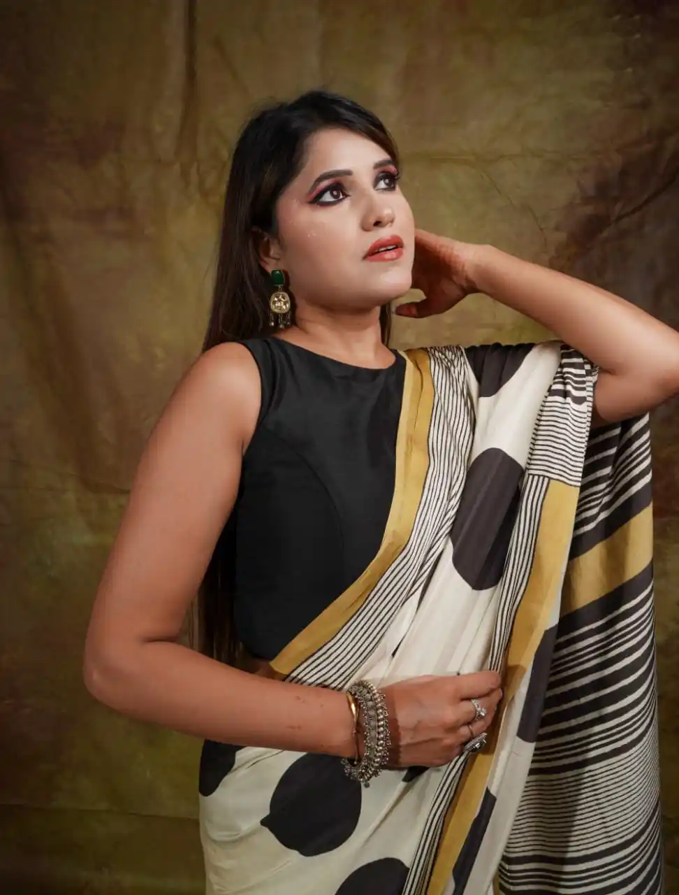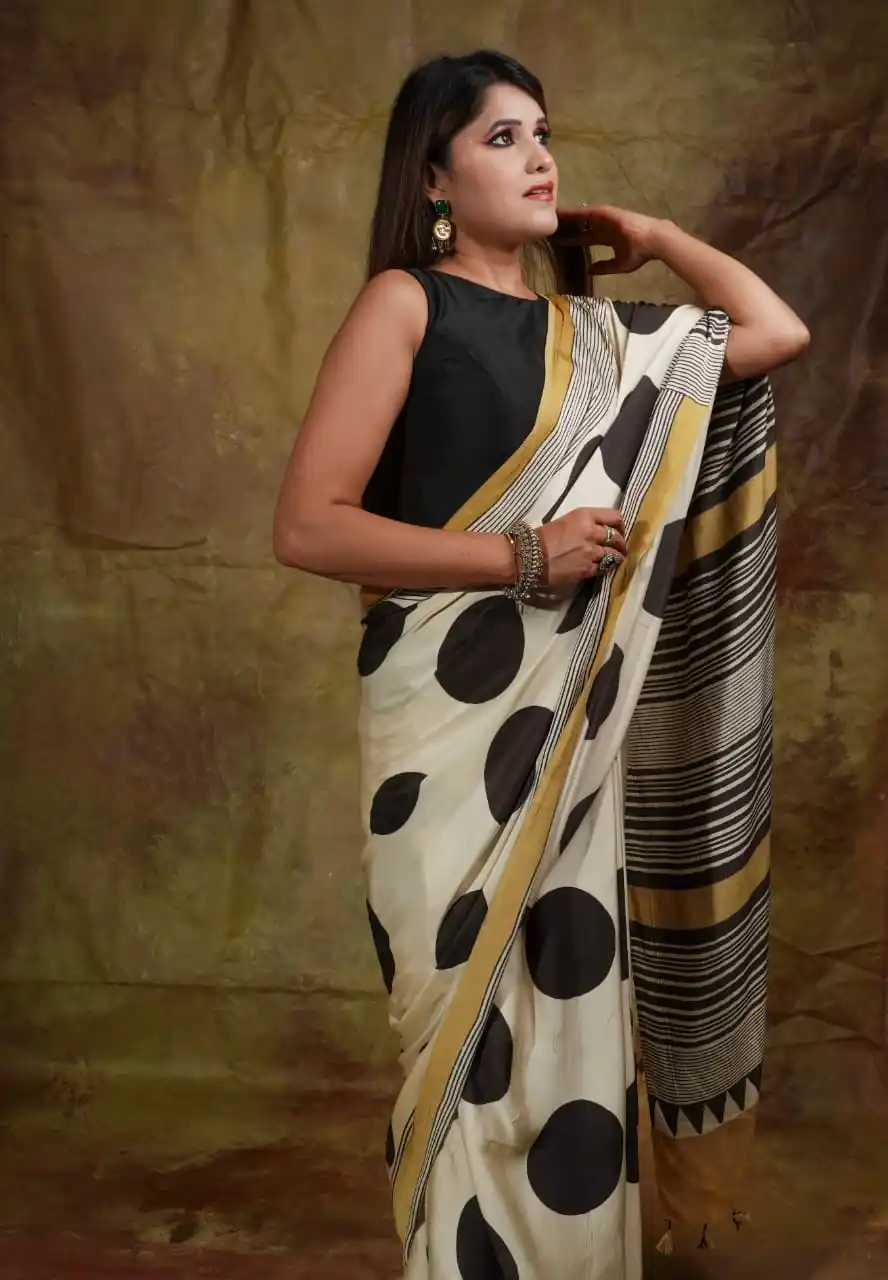 Wheat Color Ajrakh Saree